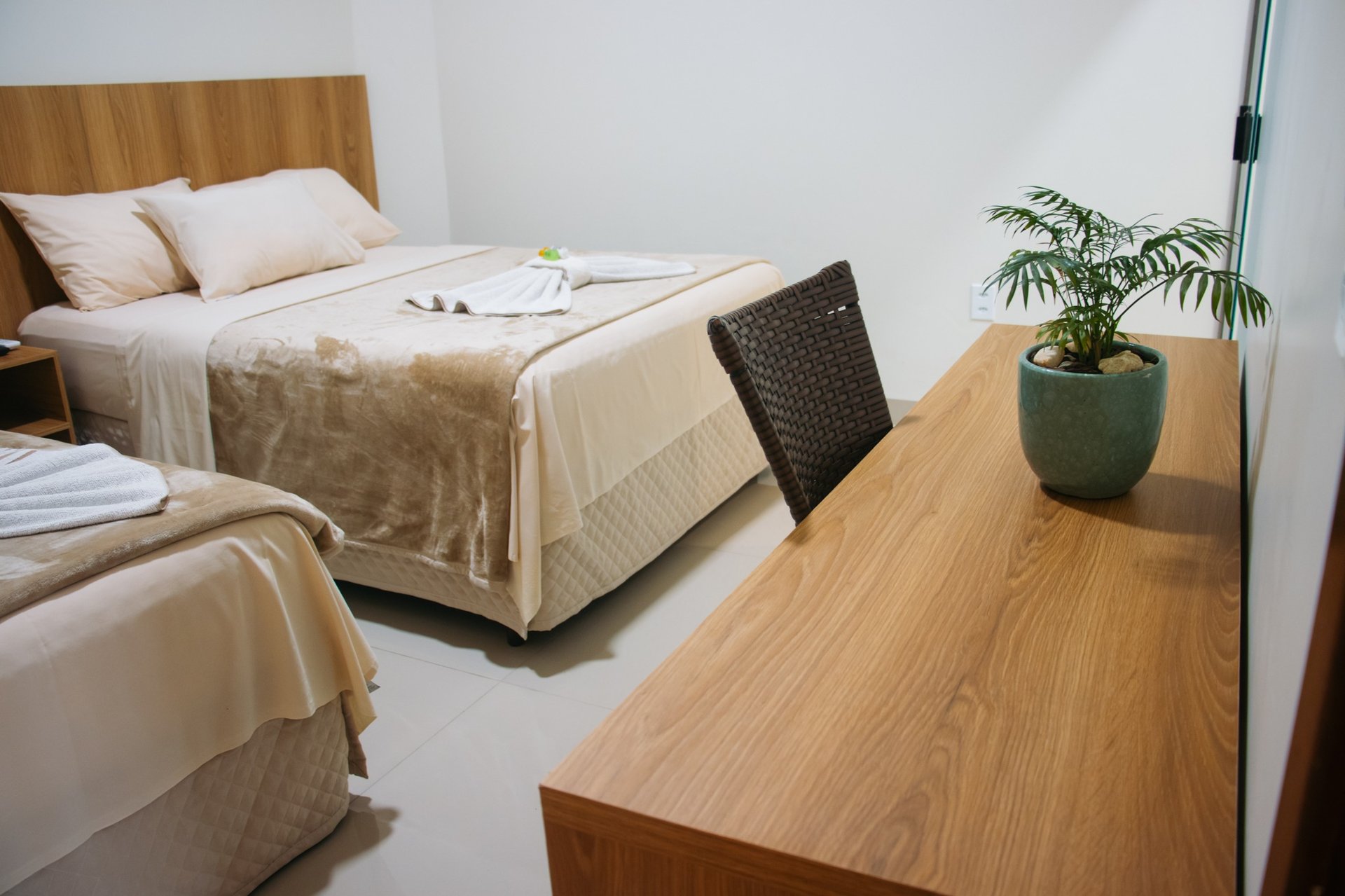 Na Pousada Casa Grande, cada suíte foi projetada para oferecer uma experiência de descanso completa, unindo elegância, conforto e funcionalidade. Nossos quartos contam com decoração refinada, inspirada na serenidade do interior mato-grossense, e toques contemporâneos que criam uma atmosfera acolhedora e sofisticada.