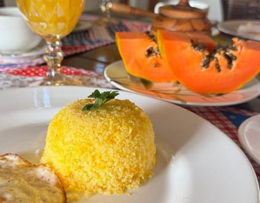 Pela manhã, o aroma do nosso café artesanal anuncia uma experiência única. Cada detalhe é pensado com carinho: utilizamos produtos frescos, sabores regionais e um toque especial de hospitalidade.